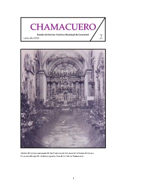 CHAMACUERO Boletín del Archivo Histórico Municipal de Comonfort 2 junio-julio 2016 Interior del templo parroquial de San Francisco de Asís durante la Octava de Corpus. Principios del siglo XX. Archivos digitales Casa de la Cultura Chamacuero. 1