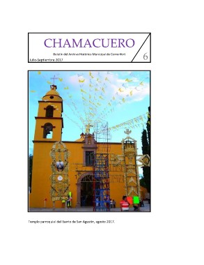 CHAMACUERO 6 Boletín del Archivo Histórico Municipal de Comonfort Julio-Septiembre 2017 Templo parroquial del Barrio de San Agustín, agosto 2017.